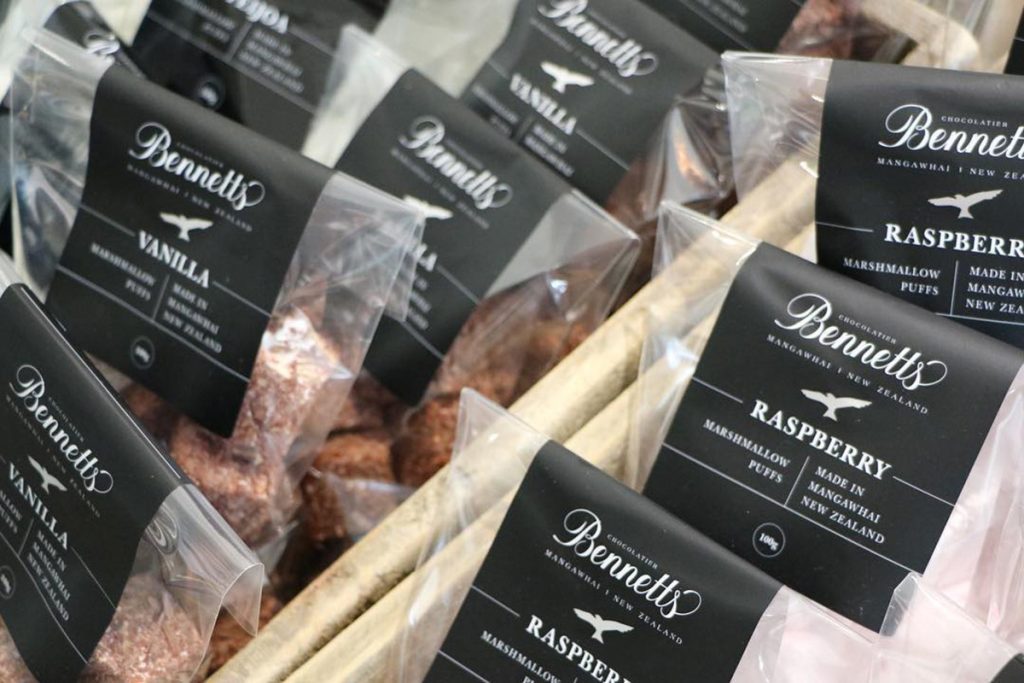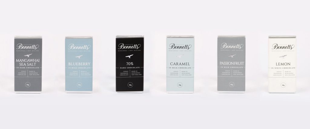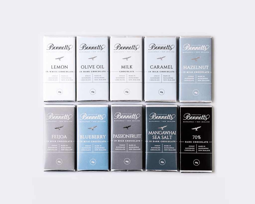 Bennetts reached out to me for a revamp of their 60g chocolate bars under the project “Colours of Mangawhai“. Situated in the stunning landscapes of New Zealand, it was only fitting to draw inspiration from the environment. Embracing hues from the serene blue skies of a crisp spring day for the blueberry chocolate bars to the moody shades of winter clouds for our dark chocolate, we curated a palette evoking the essence of the beach. Extending this refreshed aesthetic, we also applied it to other product lines like Marshmallow Puffs and Chocolate Buttons.