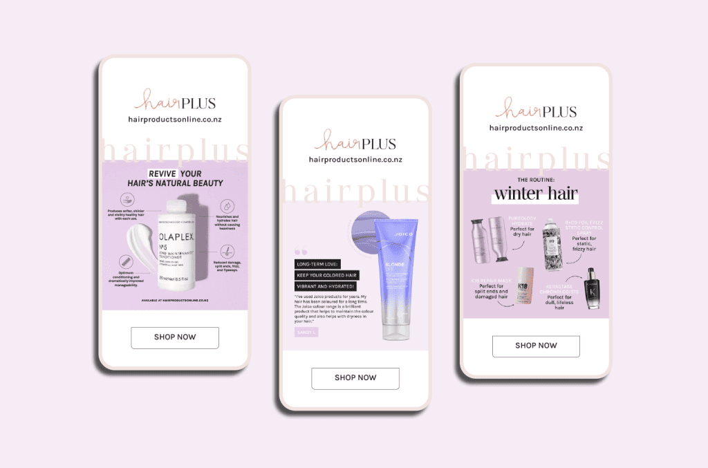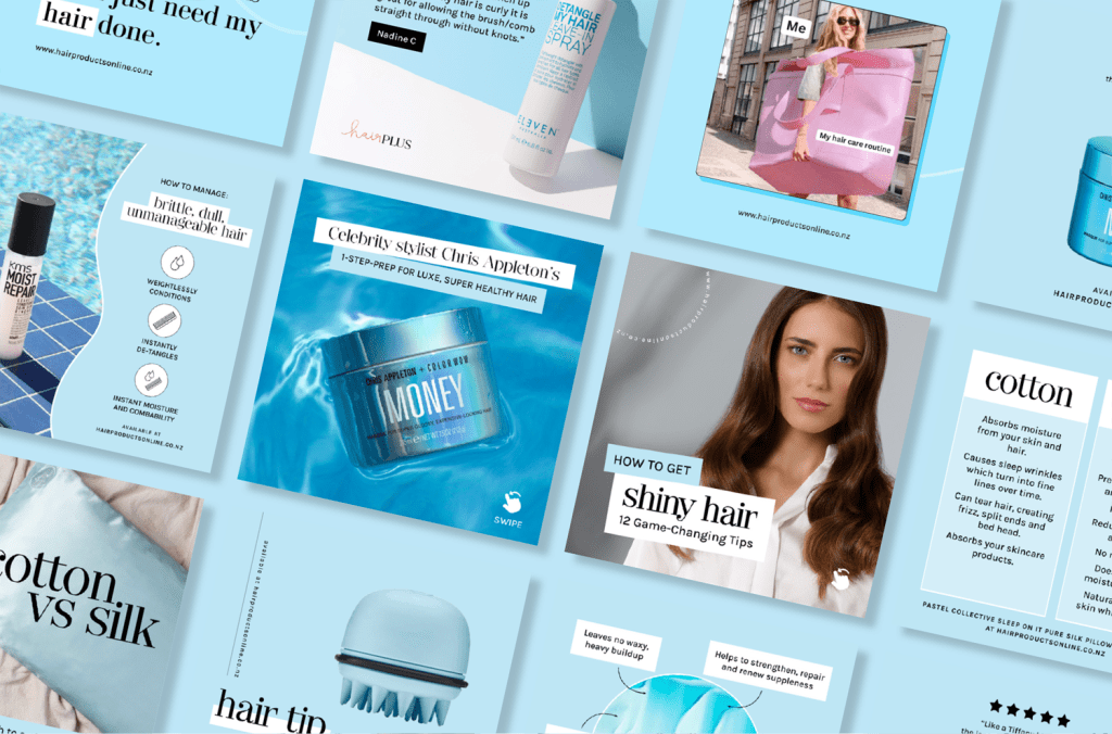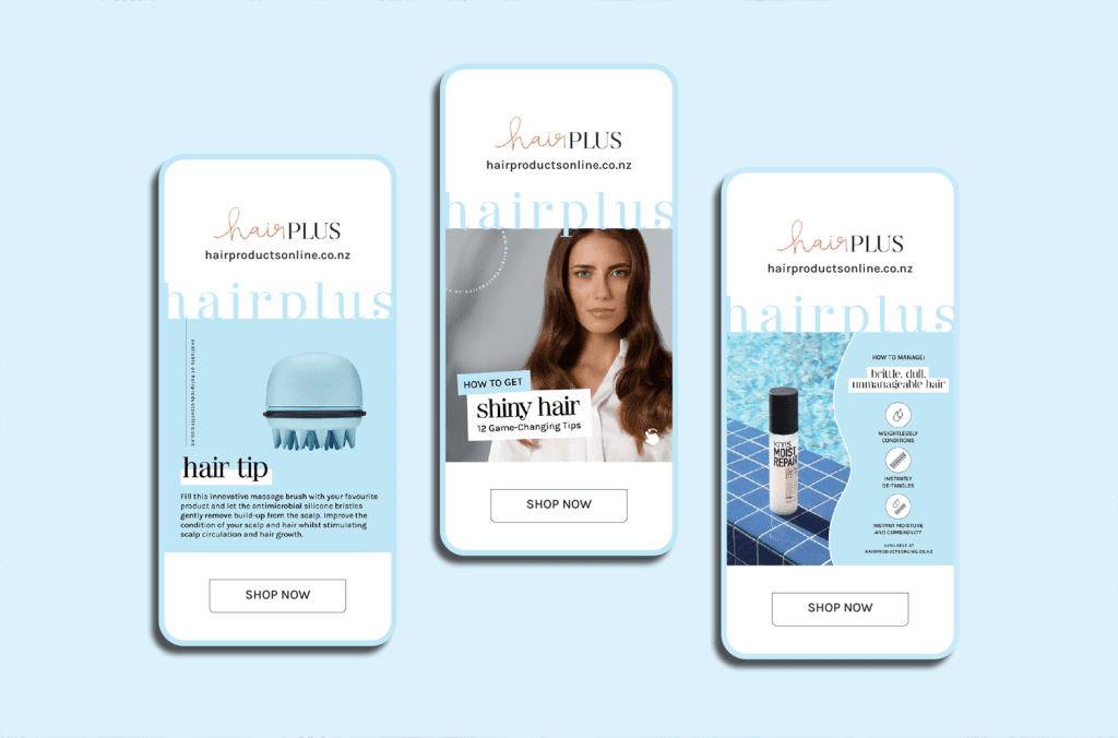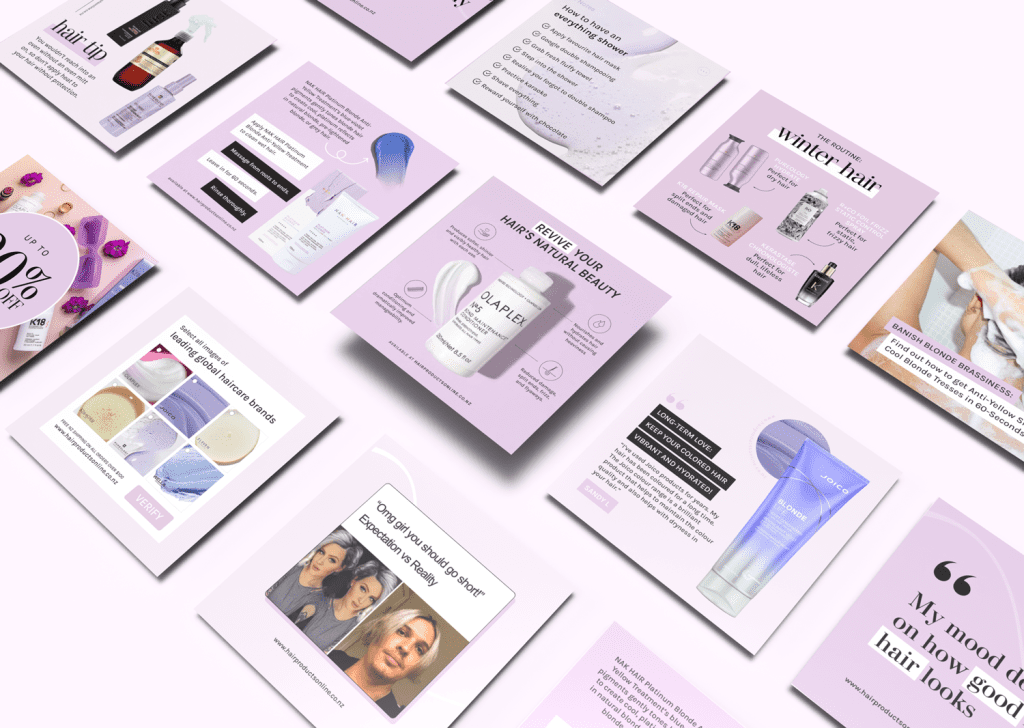 We work with Hair Plus to create engaging social media content that effectively promotes their hair products online. Each month, we develop a series of posts centered around a specific colour theme. This approach ensures consistency in their content while keeping it fresh and captivating. By introducing new concepts and ideas within the colour themes, we keep their audience engaged and interested.