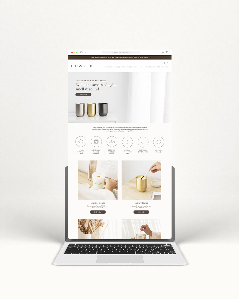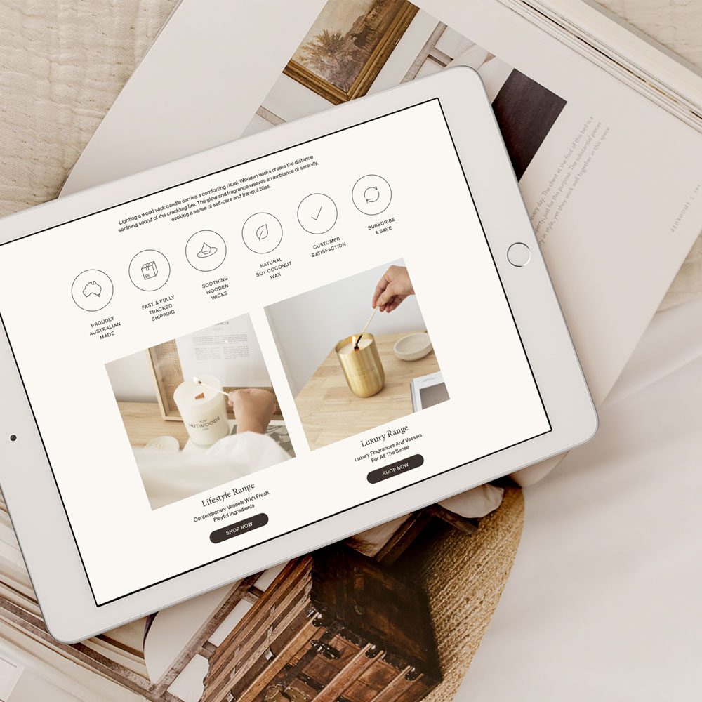 Hutwoods is a stunning brand, with luxury candles and other home and body fragrances. They came to us looking to completely redesign their website after undergoing a recent rebranding.