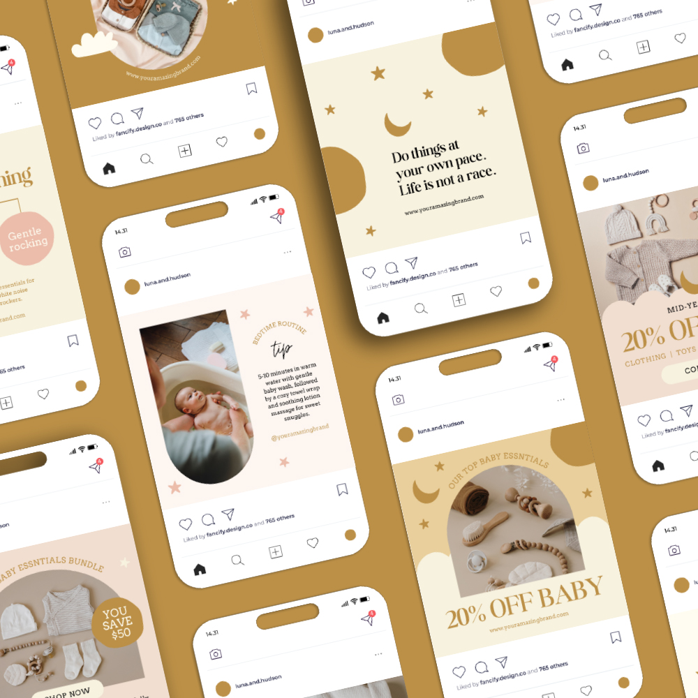 Our charming Boho Baby Canva Templates are designed to captivate! With a warm, boho-inspired aesthetic, these templates feature natural fonts and colours, perfect for businesses catering to infants, toddlers, and children. Adorable graphics and childlike illustrations add a whimsical touch, creating a cozy atmosphere that appeals to parents seeking authentic products. Elevate your baby and kids’ brand with these unique templates and connect with your audience from the first glance.
