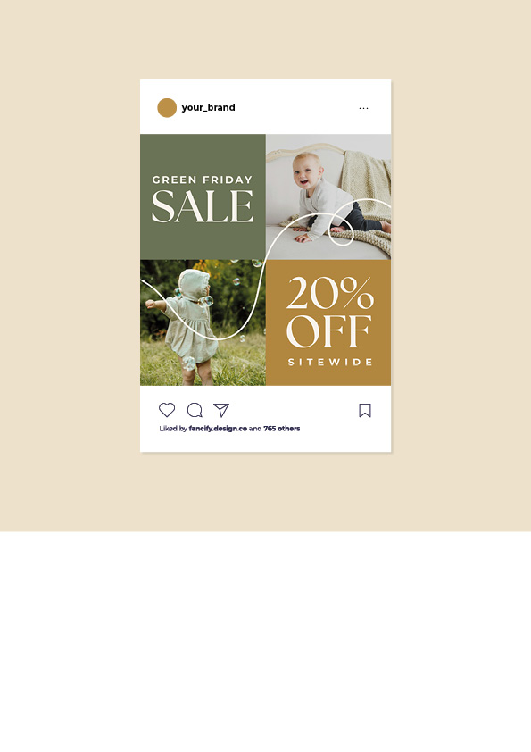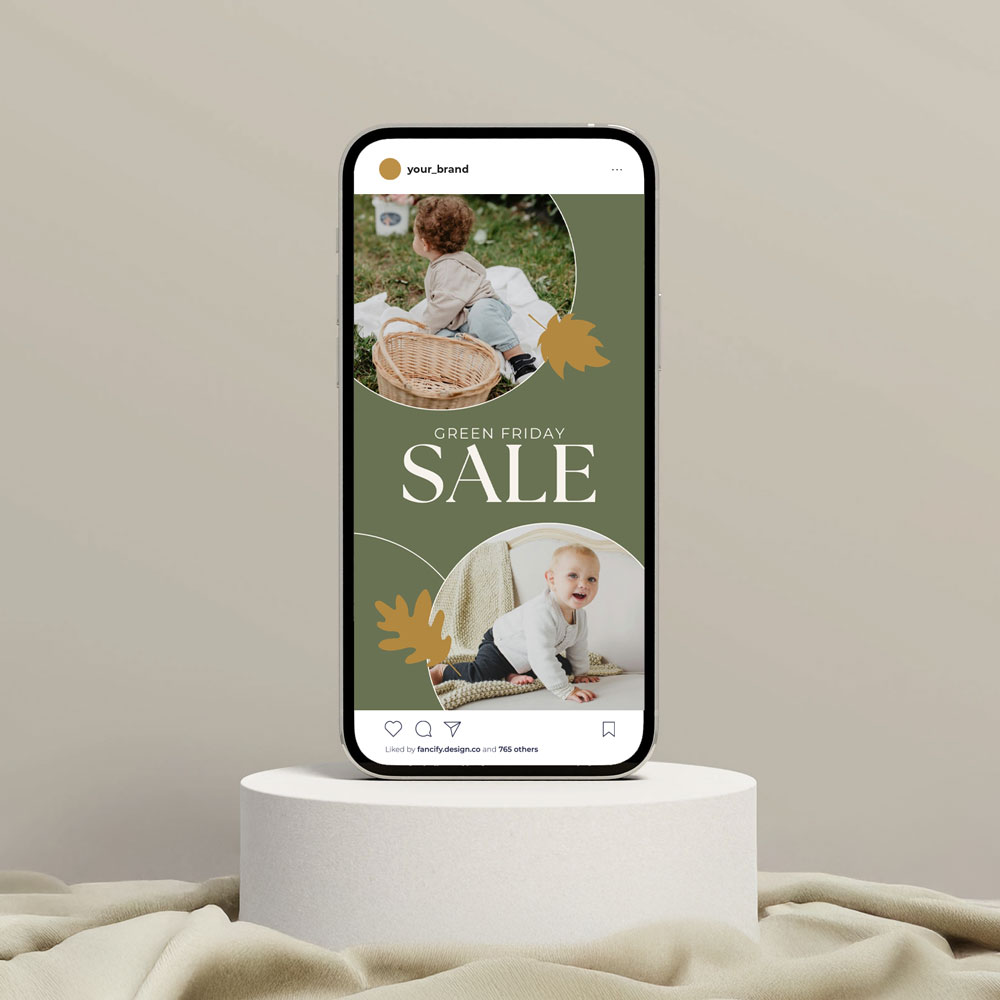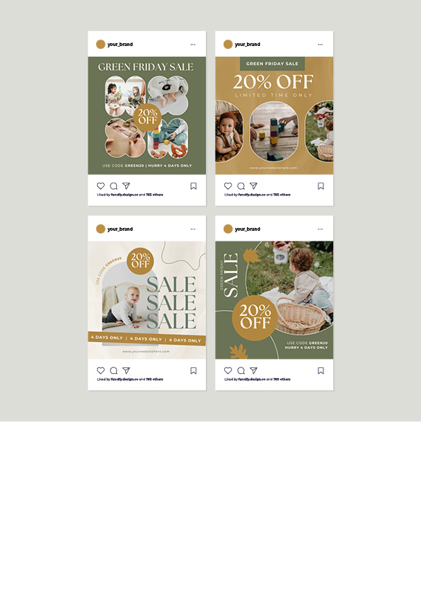 Say hello to our adorable Green Nature Baby Canva Templates – just what you need for a fuss-free Green Friday promo! Designed with eco-conscious stores in mind, these templates are a dream come true for quick, easy customisation. Featuring natural fonts, earthy colours, and the cutest childlike illustrations, they instantly create that warm, cozy vibe parents love. Perfect for brands catering to babies, toddlers, kids and eco-conscious stores, these templates make your Green Friday Facebook ads a total breeze. Simply add your images, pop in your text, and voila – you’re ready to charm your audience with an authentic, organic aesthetic!